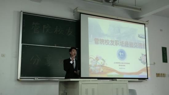 来访的校友主要是旅游管理专业的同学们,其中来自08级旅游管理1班的沈捷成同学说到他自己时就一句话:“不走寻常路”。他首先介绍了他的学生时代和大学刚毕业的职场生涯,然后特别说明自己创业的历程。针对学弟学妹们的现状,他指出学生要以“学”为本,给自己找好位置,定位自己,并不是任何人都适合创业的,所以不能随大流。谈到创业,罗捷成说需要具备的三点,一:投资二:项目,好的项目才会赢得投资。三:管理团队。以及人脉和资源也是很重要的。他又劝诫学弟学妹们上课尽量控制自己不玩手机,认真听课,因为这将是人生中为数不多的课堂,而之后走出大学步入社会后,这种学习机会是很难得的,他建议大家多读书读好书,这对未来生活和工作都有很大的帮助。