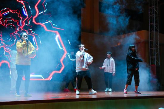 视觉传达设计(双语)1班自编的嘻哈歌曲《天华是我家》让行走的青春荷尔蒙燃爆了这一冬天。嘻哈风袭卷了我们的脑海,让晚会的气氛又掀起了一层热浪。