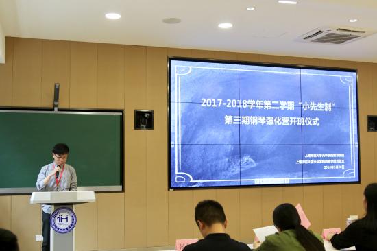 本次开班仪式共分为五项议程,第一项议程由岳远洋老师为大家做开班动员。岳老师指出,这次的“钢琴小先生”在以往两期的基础上有所创新,以考前辅导的形式展开,并首次开放了光华楼数码琴房供各位学员学习,是一项具有高规格的课程,也希望各位学员可以把握机会好好学习。