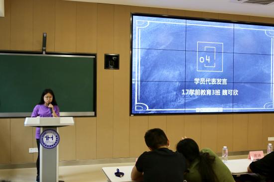 (魏可欣同学作为学员代表进行发言)