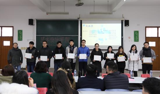 2016年12月28日中午11点45分,艺术设计学院首届“创艺杯”专业竞赛颁奖典礼于日阶202隆重举行。艺术设计学院党总支书记王慧荣,艺术设计学院副院长、数字媒体艺术专业主任徐子卿,艺术设计学院院长助理、环境设计专业主任李娟,艺术设计学院视觉专业老师钟华勇,艺术设计学院分团委书记张旭以及我院正副辅导员们莅临本次颁奖典礼。