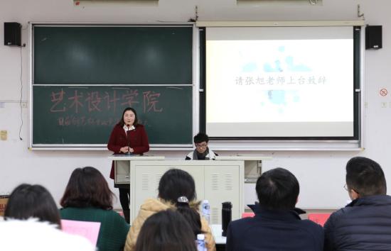 首先,由艺术设计学院分团委书记张旭老师上台为本次典礼致辞,她提到专业性的不可代替,专业学习的方式存在多种多样,本次大赛也是希望同学们能利用课余时间增加对专业学习的动力和兴趣,通过此次契机学有所悟,学以致用。