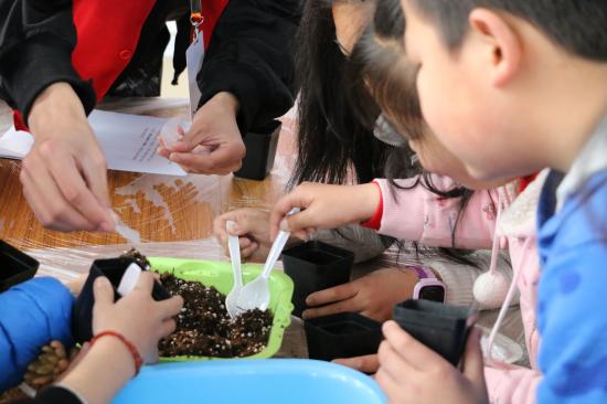 接下来的是最让人印象深刻的“种下梦想”活动。小朋友们拿起小铲子亲自动手在花盆里埋下种子,种下自己的梦想,并插上属于自己的许愿卡。一张张灿烂的笑脸青春洋溢,映衬着暖暖的阳光,甜到人心坎儿里去。植树亦植未来,希望今天我们种下的小小树苗,能在来年收获大大的希望!