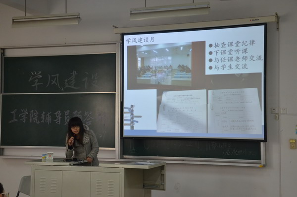 | 工学院响应学保处学风建设月活动宗旨,检查学风建设月辅导员工作效果,于2013年11月27日上午在日阶305,组织召开辅导员学风建设月预答辩会。工学院党总支书记刘香连、总支副书记王慧荣、赵科出席并担任评委,全体正副辅导员出席会议。 8名辅导员依次根据本月学风建设期间的工作情况及成效进行了答辩,历时两个半小时。通过答辩可以看出,辅导员用行动积极落实学风建设月的指导思想,精心准备,措施多样,工作卓有成效。针对工作中存在的不足,在每位辅导员答辩后,答辩评委均针对工作汇报情况提出整改意见和建议,鼓励辅导员要善于开动脑筋、工作汇报要突出重点和亮点,强调下课堂、重考级、关注重点学生,要有措施、有干劲,通过真抓实干,切实提高学风,并以制度化措施巩固学风建设月的成果。 此次预答辩会旨在明确各班辅导员学风建设情况,督促辅导员开展学风建设工作总结,检查问题,交流经验,为之后学院辅导员答辩做好充分准备。(金玫) | ||