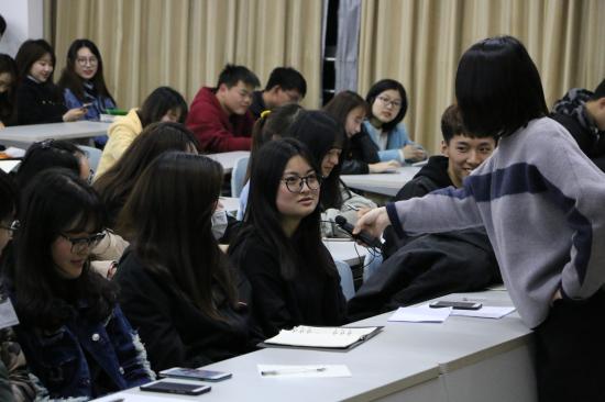本次党课是由奚惠老师担任讲师。课程一开始,奚惠老师就与学生进行互动提问,通过提问“中国真的崛起了吗?”引出本次党课主题“中国崛起”。