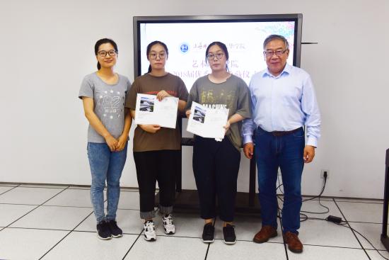 随后,黄喆老师宣读了获奖学生和作品名单,由王大根院长和相应指导老师为获奖毕业生颁发收藏证书。同时学院还为获奖同学准备了印有艺术设计学院LOGO的U盘一份和精美鼠标垫一份,小小心意展现出母校对于毕业生浓浓的情谊。