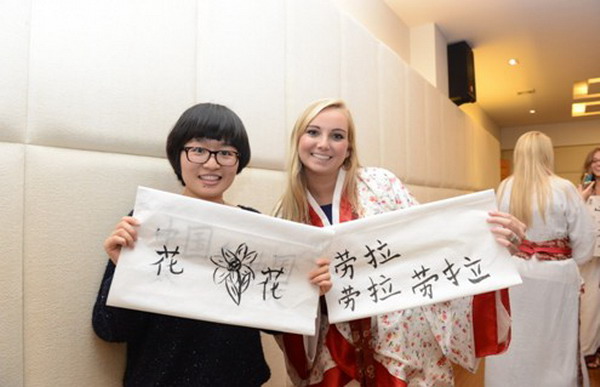 | 2014年5月19日,美国阿拉巴马大学人文环境学院Michelle教授带领七名学生来访我校,并与语言文化学院汉语国际教育专业进行了文化交流。副校长兼语言文化学院院长史文、语言文化学院副院长陈再阳、国际交流处副处长胡珍及汉语国际教育专业主任甘小明、专业教师张文庭及9位学生参加了此次交流。 副校长、语言文化学院院长史文致欢迎辞后,汉语国际教育专业的学生结合专业学养向来宾们展示了中国传统文化魅力,她们热心地帮来宾穿汉服,教他们写毛笔字,现场气氛热烈友好。下午,师生们又陪同来宾参观了孔庙,帮助他们更多了解中国传统文化。(语言文化学院) | ||