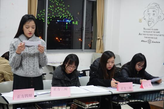 (17级学前教育(中美合作)1班学生辩论训练现场)