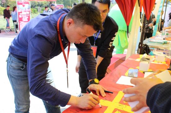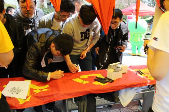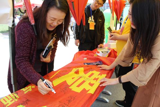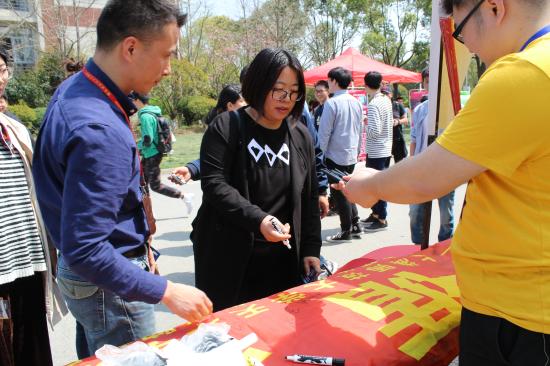 活动现场的气氛异常热烈,许多领导老师、同学停下了自己的脚步,上前签上了自己的姓名,主动关注了工学院党员工作站的微信公众号并了解小红伞活动的内容和意义。