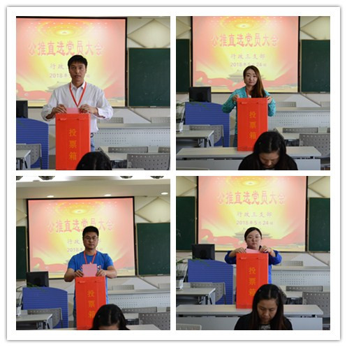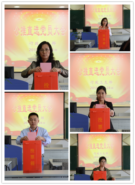 为加强学校基层党组织建设,持续深化“两学一做”学习教育活动,行政三支部按照学校党委统一部署,于5月24日上午在明华楼演播中心召开了党支部公推直选大会。会议由行政三支部董海霞书记主持,行政党总支委员李艳艳老师列席会议,行政三支部全体党员出席本次会议。
