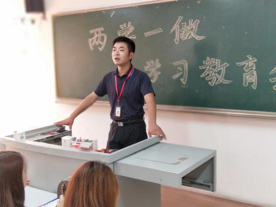 陈明晶书记做“两学一做”学习教育讲话,就“学党章党规、学系列讲话,做合格党员”学习教育,强调“两学一做”学习教育不是一次活动,是一次党内的正常教育,要把党的思想政治建设放在首位,抓住日常、严在经常。同时,提醒同学们中国共产党第十九次全国代表大会将于10月18日召开。在召开期间,应多关注中央新闻,关注十九大提出的政策。