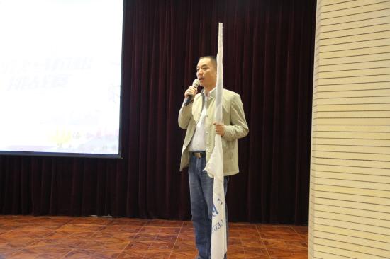 资产设备处处长朱清为参赛选手授旗,并宣布“2018上海大学生阅读马拉松秋季赛天华赛区参赛者出征”。