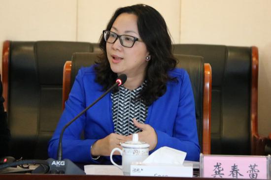 参观活动结束后,全体成员在明华楼五楼会议中心举行广西民办高校负责人考察团访问交流会。龚春蕾副校长介绍了我校概况,她提到我校的发展定位:着重发展工科类、师范类的应用型本科试点单位。她也介绍了我校教育教学特色:注重师资培养以及师资国际化、注重国际化推进、注重教育革新、活力课堂的教学改革、注重科学管理并建立起一整套质量保障测评体系以及培养学生秉承“三抓三坚持”。
