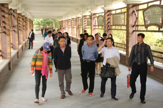 首先,我校领导带领广西民办高校负责人考察团参观校园环境,介绍了我校先进的标准化考场控制中心,在线教学督导中心以及管理学院金融综合实训室。其中综合实训室是我校暑假新建成的学习场所,它可以作为会议报告室,也可以作为一个证券交易所,提供实时的股票信息,为学生提供更多的学习方式,提高学习效益。随后,代表团步行来到文化长廊,穿过修身苑、正心亭,感受天华的文化魅力。代表团走过同华楼和鑫华楼之间道路,途径能容纳1500人的大礼堂,来到了图书馆。图书馆工作人员向领导展示了电子借阅机的自助归还以及电子图书的借阅流程。最后,全员乘车来到生活区,参观七号楼党员工作站及宿舍。
