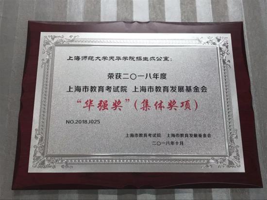 10月18日,由上海市教育考试院、上海市教育发展基金会联合举办的2018年“华强奖”颁奖大会在上海市教育考试院崇明院区举行,我校招办获评2018年度“华强奖”先进集体奖。
