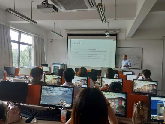9月12日中午12:00,来自西俄勒冈大学的Gregory Zobel美国教育技术专家Greg在明华楼433为新教师及“三双”教师带来教育技术专题讲座,讲座上Gregory Zobel教授与大家分享了“内容创建”的几个教育技术,如ThingLink, Online Chart Tool, Big Huge Labs,并现场演示了ThingLink的使用,新教师与Greg Zobel教授进行了积极的互动,新教师纷纷表示,本次教育技术培训为开展“活力课堂”提供了强有力的助力!