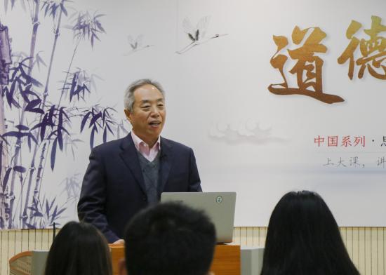 2018年11月22日上午,我校“中国系列”课程《道德中国》继续开讲。上海师范大学博士生导师石书臣教授主讲“友善价值观的中国特色和时代内涵”,思政教研部主任丁彩霞主持。