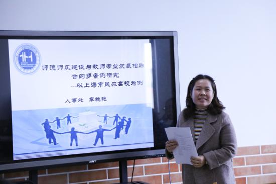 由我校负责建设的上海民办高校党建和思政工作研究中心,现阶段重点工作是组织2018年课题研究工作。本年度,全市民办高校共有150项课题获得研究中心立项资助,其中我校有32项课题获得资助(重点课题3项,自选课题11项,培育课题18项)。本次研讨会主要围绕我校立项课题研究的进程、遇到的困惑、改进措施等几个方面进行了深入地交流及讨论,从而帮助负责人顺利结题。
