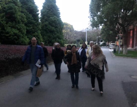 (语言文化学院胡雅楠副院长带领外教参观校园)