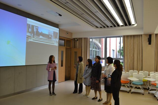 (调研团正在参观我校智慧教室)