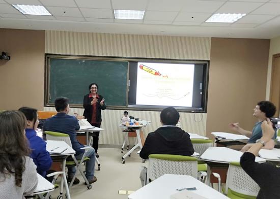 4月23日世界读书日的下午13:30-15:30,人事处在日华楼175智慧教室举行了第20期名师工作坊,本次工作坊主题为“Wellbeing of Children and Families in Healthcare Settings(关注儿童医疗保健,营造幸福家庭)”,来自美国东卡罗莱纳大学的Priti Desai博士主讲,近20名教师踊跃参加了活动,人事处处长助理李艳艳老师主持并全程参与了本次活动。