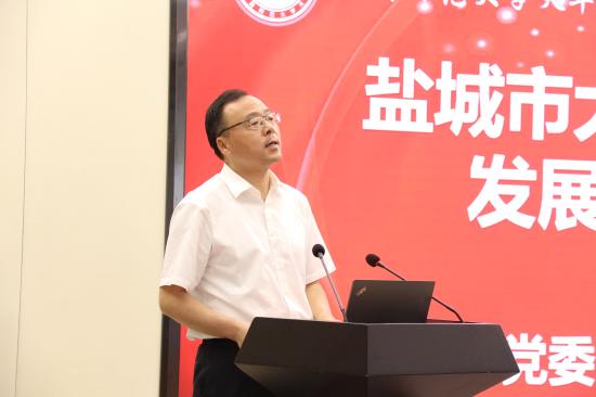 会议第一项议程,党委书记陆建非教授就“接轨大上海,融入长三角”及相关政策作报告。陆教授指出,长三角区域一体化发展,已经上升到了国家战略的层次,它将同“一带一路建设”、京津冀协同发展、长江经济带发展、粤港澳大湾区建设相互配合,共同完善中国改革开放的布局。陆教授还结合盐城的特殊情况与关键性同各位来自盐城的人大代表们进行了分析。陆教授表示,盐城作为《长江三角洲城市群发展规划》中唯一提到的来自苏北的城市,它有着非常关键的作用,盐城正处于经济发展的重要阶段,第三产业的经济增长量已经明显高于第一、第二产业,这说明盐城目前已经进入了经济的高速发展期。