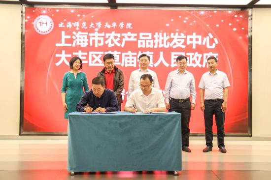 最后,上海师范大学天华学院与上海市农产品批发中心,均同大丰区草庙镇人民政府签署了合作协议。