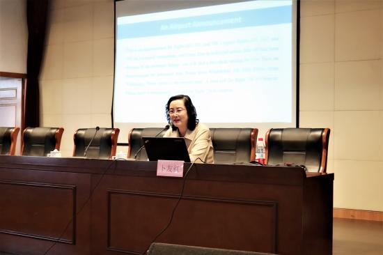 随着我国参与全球治理能力不断提高,国家需要大量具备较强综合能力和素养的国际化复合型外语人才,在学生英语综合能力的培养方面也提出了一系列新的要求。语音能力是学生英语综合能力的重要体现之一,然而,目前我国英语语音教学在各阶段仍面临诸多挑战。鉴于此,语言文化学院于2019年6月13日下午16:20在明华楼五楼报告厅举办智慧之光讲座。讲座特邀上海师范大学外国语学院卜友红教授讲述《英语语调的结构及其应用》。语言文化学院副院长孙超主持讲座,英语专业和汉语国际教育专业一、二年级的学生参与聆听。