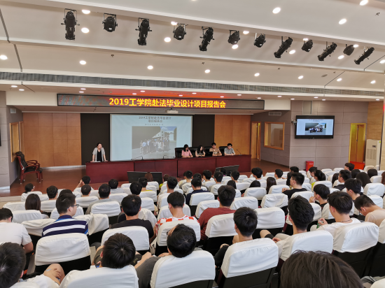 2019年6月5日中午,四名学生满载归来,在晖华楼报告厅举行工学院赴法毕业设计项目报告会,学院领导、教师及学院各专业学生参加了报告会。报告会上,四名学生通过PPT的形式展示了各自的所见所闻所感,分别从项目学习、校园生活、游学见闻等方面做了精彩的汇报,学生们纷纷表示收获的不仅是专业知识,更是一种开放多元的思想和国际化的视野。同时,我院负责外事项目的办公室主任陈丹丹老师,对我院正在与德国手工业行会之间开展的暑期游学项目做了简洁、清晰、生动的介绍。