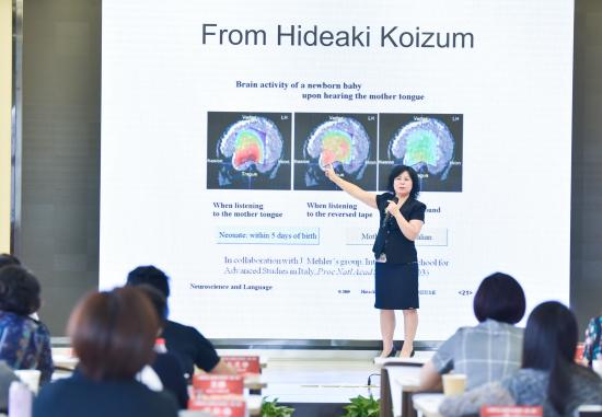 周主任介绍了教育神经科学在国内外的发展状况,从“国际心智、脑与教育协会(IMBES)”的创立、以及国内外对于教育神经科学的重视程度进行了概述,引用生动案例,分析阐述了脑与教育的关系,着重解释了“婴幼儿的语言能力”“婴幼儿的阅读能力”中婴幼儿神奇的学习能力,从大脑和神经发展的角度对我们熟悉的学习现象做了解读,解释了脑科学与有效教学的关联,提出了基于脑与认知科学开展教学策略和设计教育教学行为的科学性。周主任给大家最深刻的启发是:教育的本质是人脑皮层的改造再利用。
