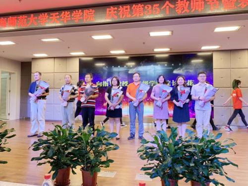 学生代表张闻迅同学代表全体同学向各位老师致以最诚挚的节日问候,并表达对我校教师关爱学生、无私奉献的崇高敬意,以及对学校的感激之情。紧接着,学生代表向各二级学院院长、专家教授献花,表达对老师们最诚挚的感谢和最衷心的祝愿。