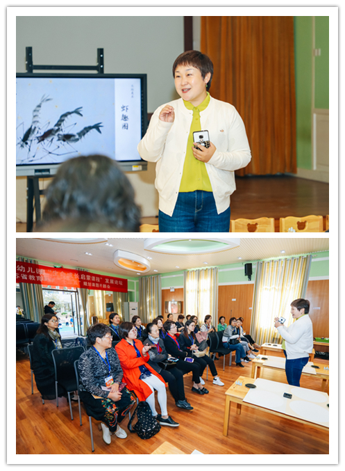 上午半天,负责接待的乔彦副园长引导我们在多功能厅集中,热情介绍了园所概况,重点讲解了园所的建筑布局,以及园所在课程改革进程中跟随幼儿成长的脚步,充分利用场地资源,设计开辟与自然生态和谐、与建筑格局相得益彰、与户外运动功能匹配的空间设施,满足幼儿探索学习的天性需求,开展生命成长启蒙课程研究的过程与成果。随后,我们观摩了两个具有创新意义的集体教学活动:大班的绘画活动《虾趣图》,中班的电化教学《小小录音员》,又走访、观摩了园所的室内外活动环境,与乔副园长和两位执教老师开展了面对面的交流研讨。园长学员们点赞了两个教学活动的创新亮点,发现了教师对孩子的尊重、信任、接纳,以及在教学中体现的游戏精神,肯定了二幼孩子在探索学习中表现的优良学习品质。乔副园长还针对学员们感兴趣的幼儿手环,介绍了南京二幼智慧校园的建设,以及对幼儿园管理和教师科研的独特价值。