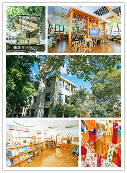 步行拐进一条弄堂,孩子们欢乐的声音吸引我们走进了一所隐形于住宅群里的幼儿园,大门口的园名是一位名家题写,却显得朴素自然,有一组孩子在门口玩球,在他们的身后是幼儿园的吉祥物“蚁宝”欢欢和乐乐张开着不同的欢迎姿态,非常稚拙可爱,一种亲切自然欢乐祥和的气息扑面而来,而园所的培养目标“爱自然、乐探索、勤运动、好品行”也一下子映入眼帘。