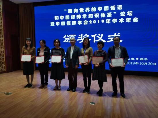 语言文化学院汉语言文学专业主任翁晓玲副教授作为中国修辞学会代表出席了大会,并担任分会场“修辞与话语建构研究”论坛主持人,在会上作题为《汉语学习词典中的中国形象建构》的学术汇报,并在闭幕式上作总结发言。该汇报论文在会上荣获“中国修辞学学会2019年学术年会优秀青年学者论文奖”一等奖。本次大会共评选出优秀青年学者论文奖一等奖6名、二等奖8名。