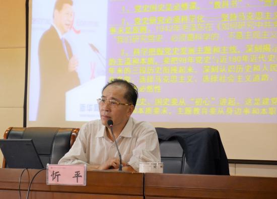 忻平强调,“欲行大道,必先为史”,“灭人之国,必先去其史”,当下学习党史、新中国史是抓好主题教育的重要途径,有助于学习党的历史智慧和历史经验,化解当前国际国内复杂局面,完成“两个一百年”奋斗目标。党史、新中国史是必修课,是“教科书”、“营养剂”、“清醒剂”,是党科学判断历史方位的基本依据和行之有效的重要经验,同时也有助于提高党员的党性修养。