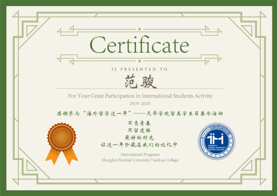 收到活动稿件后,由二级学院、国际交流处、带队教师联合进行网络评选、排名投票后,评选范骏(康复治疗学)为一等奖;杨哲融(学前教育)、刘瑞青组(学前教育)为二等奖;陈韵萌(学前教育)、刘光裕(康复治疗学)、宋怡凡(康复治疗学)为三等奖;王思钦组(学前教育)、朱昊天(小学教育)、王沫石(小学教育)为优胜奖,颁发证书。评审过程中,多位评审老师表示在观看学生作品的同时极其感动,在追随学生回顾留学经历的同时,感受到学生一年的成长及收获。