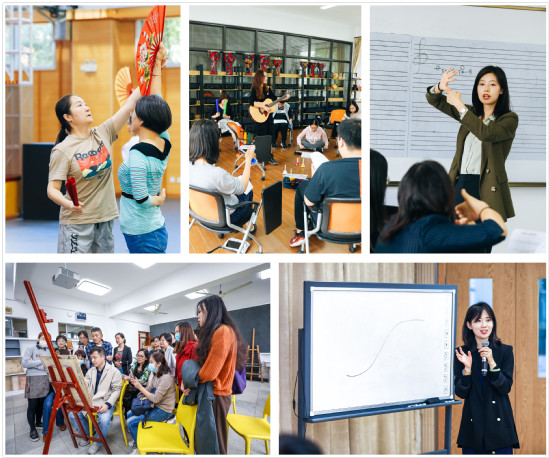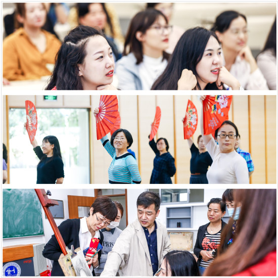 开班仪式结束后,通识学院李卓琳老师以“生活中的创新”为题,开启了“哲学思辨”模块的第一次课程。在一小时的讲座中,李老师深入浅出地用身边的各种实例向在座教职工学员展示了“创新无处不在”的理念,与老师们探讨了“千方百计教会学生创新思维”的重要意义。此后,10月13日至16日,学前教育学院答英娟、吴南、曹勇三位老师的“功夫扇”“轻松学钢琴”“零起点学素描”及健康学院赵婉茹老师的“音乐减压及音乐家庭亲子活动”课程陆续在每天午间与教职工见面,当周课程累计参与教职工100余人次,报名踊跃,好评如潮。