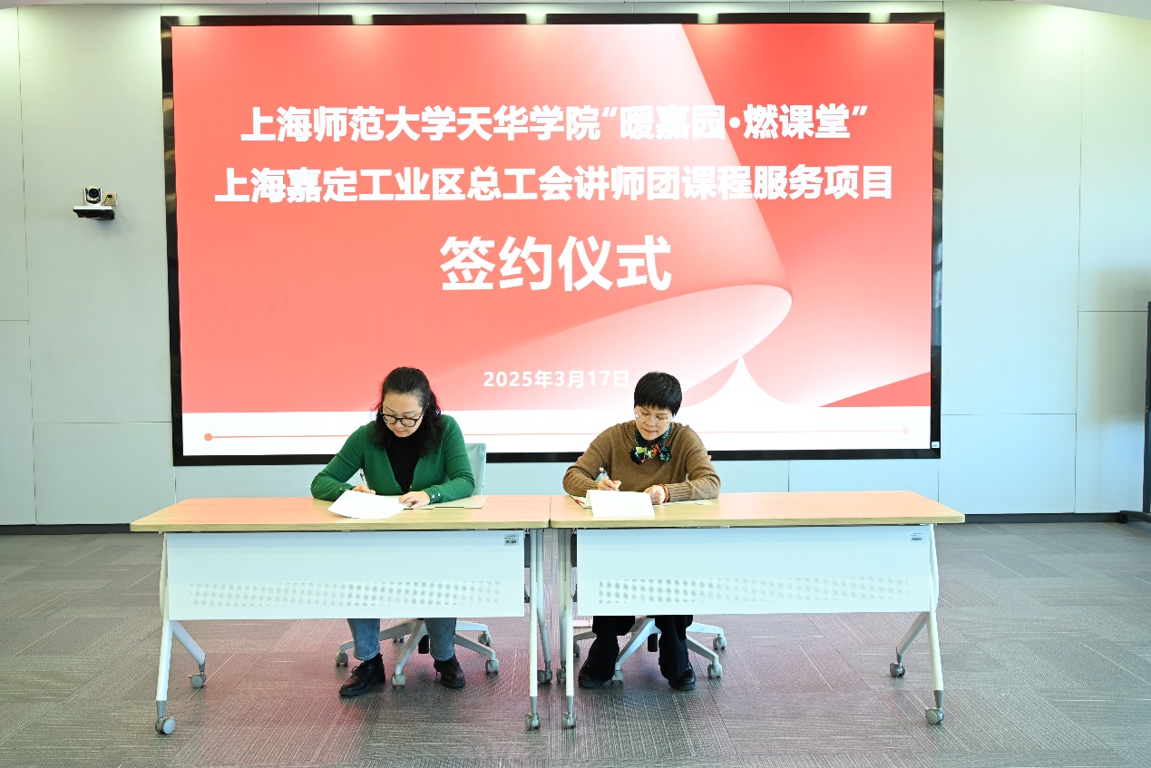 学校与嘉定工业区总工会签订项目合作协议3月17日下午,学校与嘉定工业区总工会正式签署“嘉定工业区总工会‘暖嘉园·燃课堂’上海师范大学天华学院讲师团课程”服务项目合作协议,双方将围绕职工职业道德素质、技术技能素质、科学文化素质、民主法治素质提升等领域展开深度合作,打造产教融合、服务民生的创新实践样板。签约仪式在学校远程教学中心举行,学校常务副校长龚春蕾、工会常务副主席曹卫;嘉定工业区总工会主席彭黛耘、副主席史亚明等领导出席签约仪式。此次合作以引导企业员工建立科学、文明、健康的工作和生活方式为目标,针对嘉定工业区工会下属企事业单位在职职工心理健康素质、精神文化需求、产业工人队伍建设等方面,推出科技生活、数字新经济、健康保健、国学经典、艺术鉴赏、家庭教育、心身健康等讲座。为提升服务实效,项目采用集中授课、订单式授课、送教上门等形式进行,方便工业区职工参与学习,提升综合素养。“暖家园 燃课堂”项目的落地,标志着学校从传统人才培养向社会化服务的延伸,也为区域产教融合提供了新范式。未来,双方将进一步完善合作机制,扩大合作范围,拓展深度合作,共同推动工会工作高质量发展,合力谱写校地合作新篇章。文 | 季嘉图| 周勇 供稿| 工会2025-03-18 -